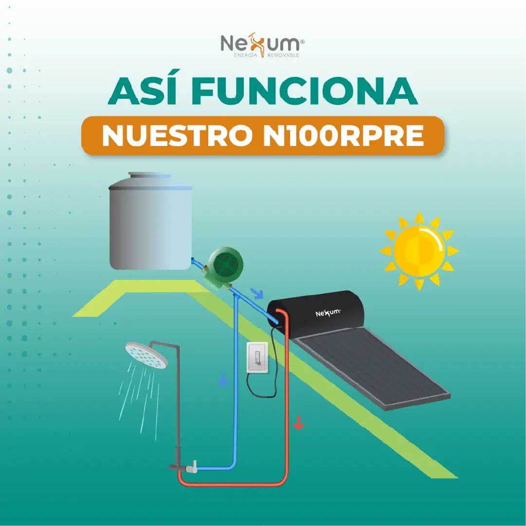 Este es el modelo autónomo o dual, que se conecta siempre desde un tanque de agua elevado. El agua se calienta solarmente y cuando llueve o en invierno que la radiación solar es baja, se enciende la resistencia para terminar el calentamiento. En estos casos puede ser abastecido por una bomba presurizable que debe ser como máximo de 110W (0.15HP).
