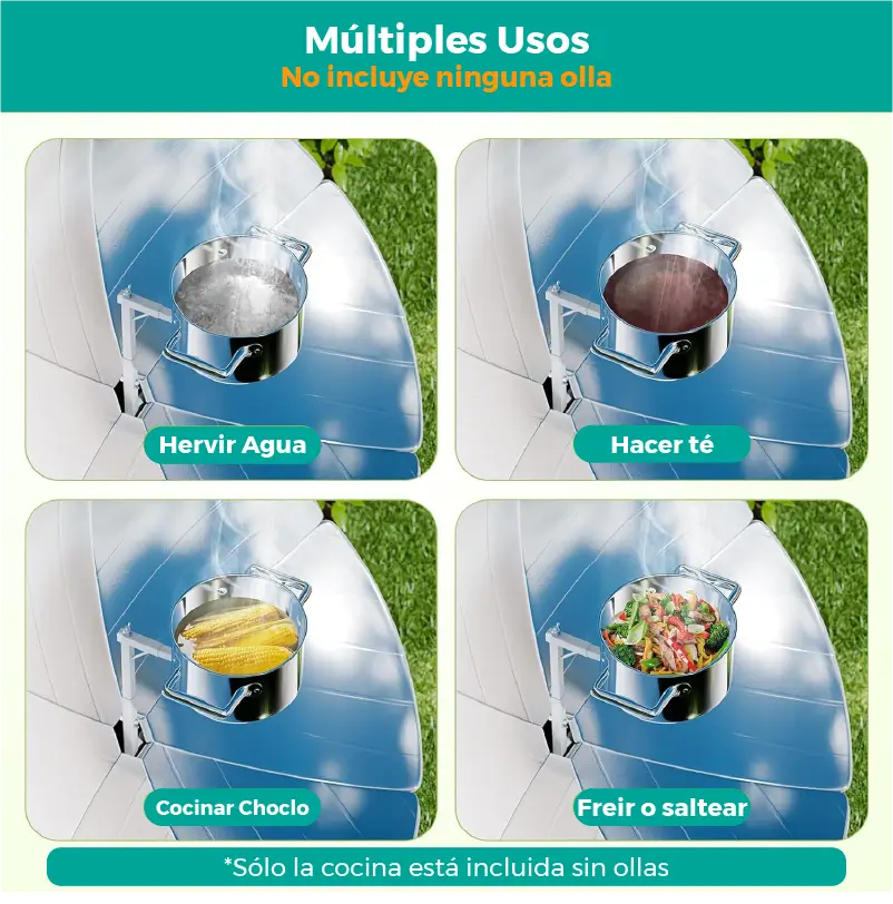 La prueba es simple: una pava, sol y nuestra cocina solar. En minutos, el agua está lista para el mate o un café. Así de fácil es aprovechar la energía gratuita y limpia para tus comidas diarias. ¡Sin gas, sin enchufes, solo con el poder del sol!