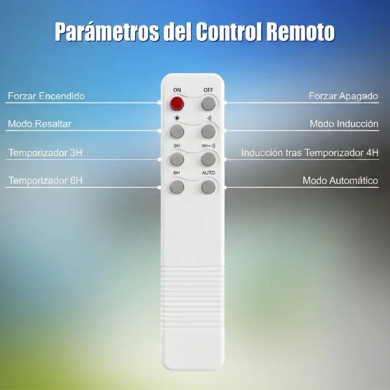 | Modos | Control Remoto + Sensor PIR |