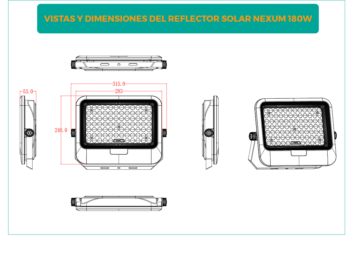 Dimensiones Reflector232 x 175 x 53 mm315 x 248 x 53 mm